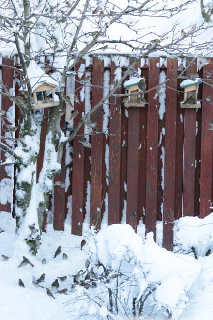 Birds braving the shitty weather to eat.