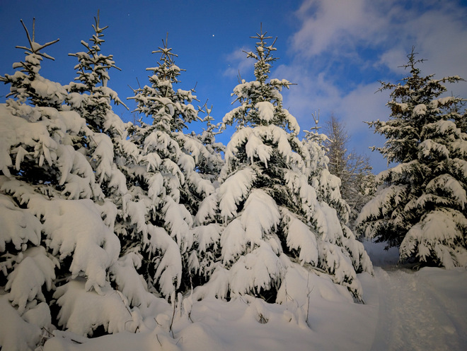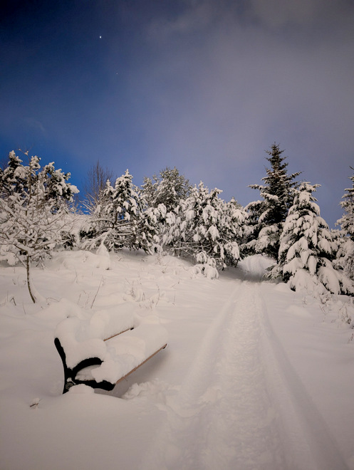 I took a turn off of the snow-mobile tracks, to reach the top of the hill. It got a little adventurous there on the way, with knee-deep snow.