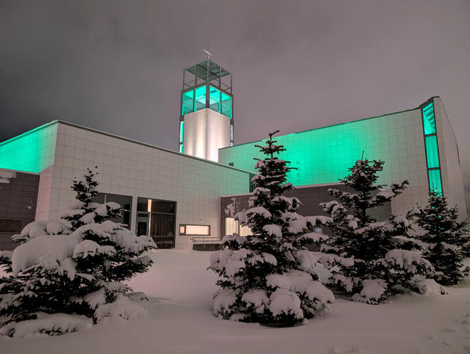 I like how colorful the church is in winter. They keep changing it too.
