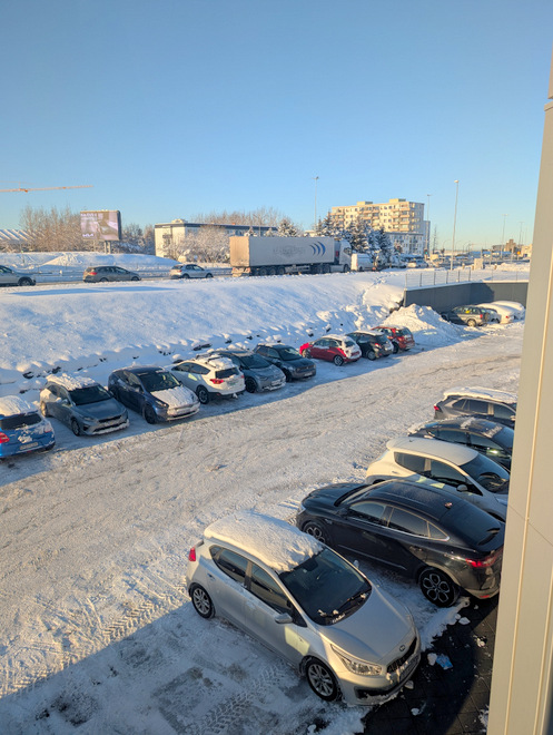 Yup, still white outside. But look at that nicely cleared parking lot!