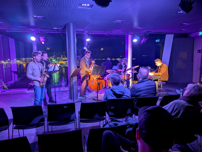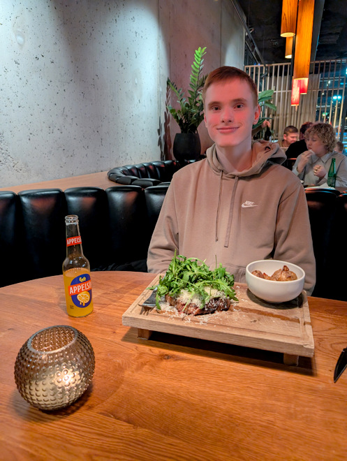 Bjarki’s guitar teacher of many years invited his students to attend a concert of his at the jazz corner in Harpa. We decided to eat dinner downtown.