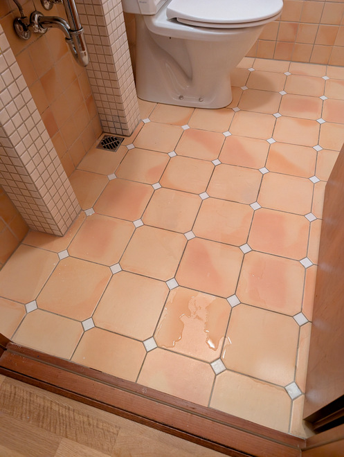 The floor drain (that the sink drain uses) had clogged, and we discovered that the floor of the bathroom sort of leans towards the rest of the house, and not towards the safety of the window-wall. Thankfully we managed to stop the water before it got to the wooden floor.