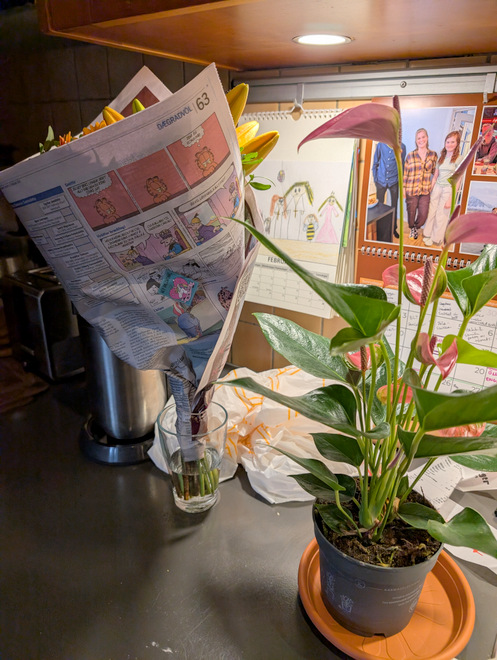 Finnur picked up flowers for Valentine’s Day! This may have been the first time ever for as long as we’ve been a pair?!
