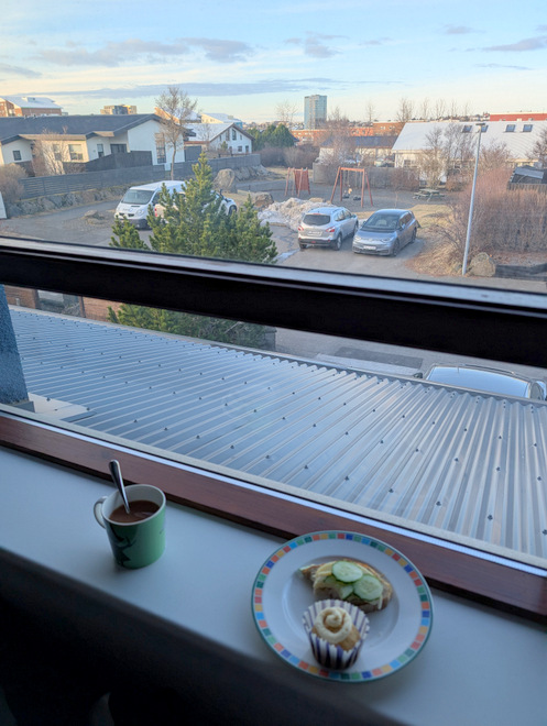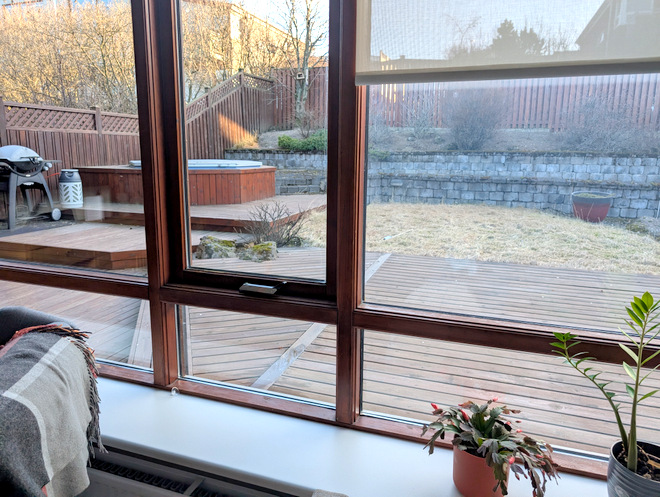 February is when the sun starts actively shining through the living room windows, and you can see just how dirty they are. Here, the right-most window has not been cleaned yet on the inside, unlike the others. I can highly recommend glass cleaning cloths, they make cleaning window soooo much easier.