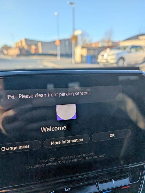 Grumble. A few days before the car was supposed to get a new front sensor to replace a slightly damaged one, it had stopped complaining. After the appointment had passed the sensor started complaining again… sometimes.