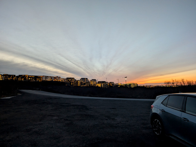 Arriving at work at 08:41 in the morning, and the sky was not pitch black. Yay!