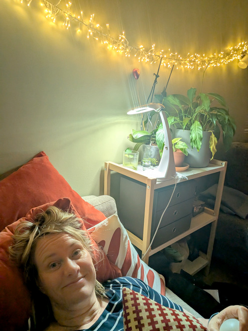 Pretending to be feeling better. But still pretty low on energy when not horizontal.