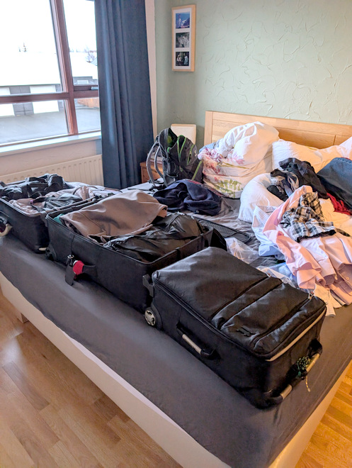 Packing our bags, about to take a flight to the UK late that afternoon for winter break.