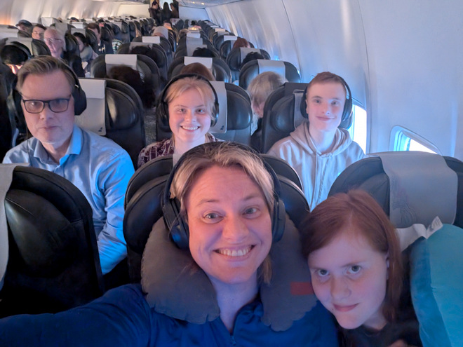 Waiting to board. Happened to see three teachers from the kid’s elementary school who still remembered Anna and Bjarki. There were a lot of awwwws.