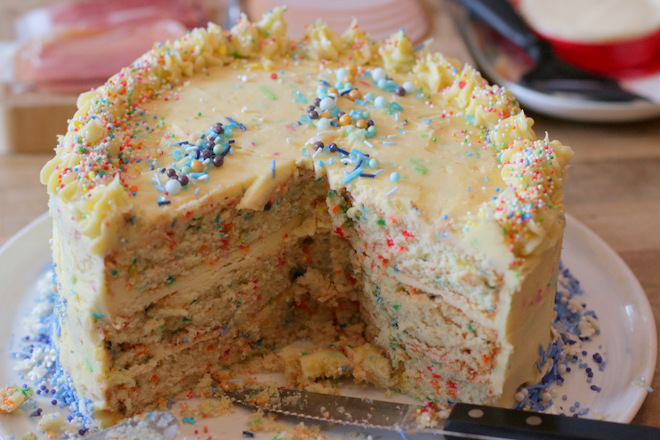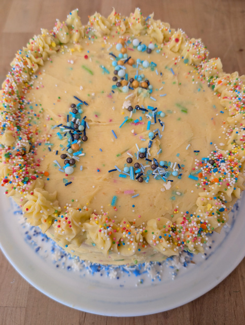 It was a rainbow-sprinkle cake! Yum!