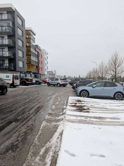 Heading back home, post-swimming. It was too warm to have a jacket on.