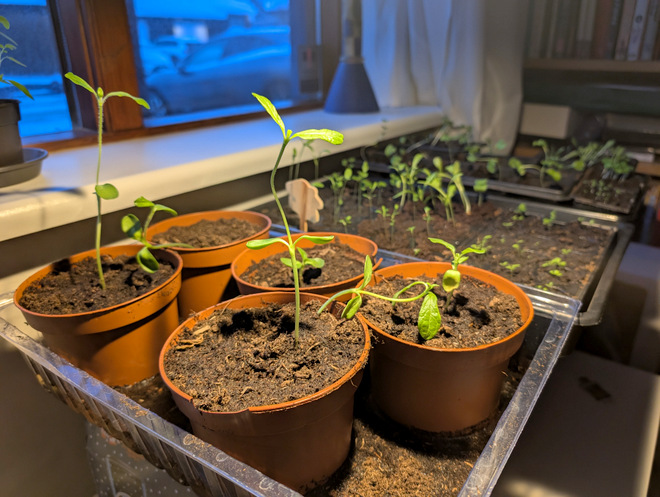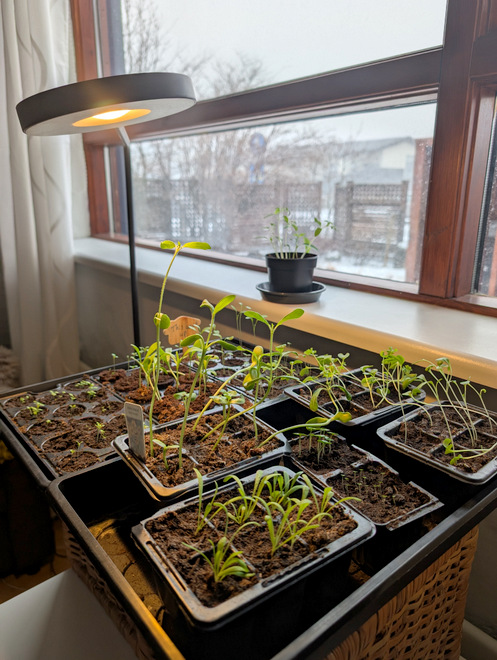 Anna’s seedlings coming along nicely under the Ikea lamp.