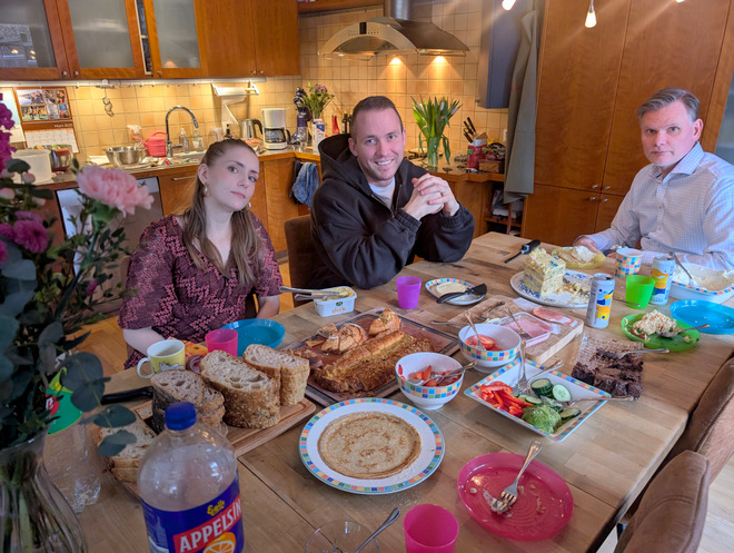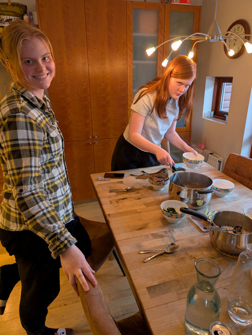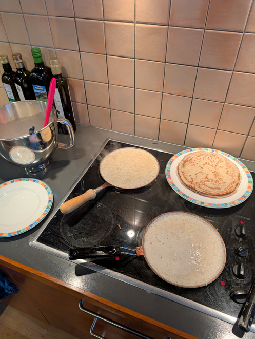 I was in a mood for Icelandic pancakes/crepes, so I made some. Newest sneaky trick is adding a bit of avocado oil to the dough, it makes it stick less to the pan.