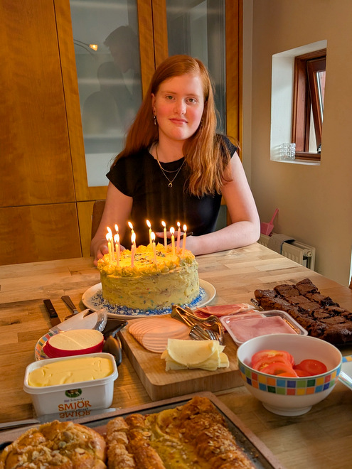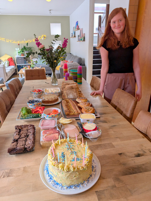 Emma busy making a cake for her own birthday celebration the following day!