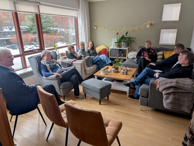 Guests trickling in. It’s always a tight squeeze in our not very party-sized abode.