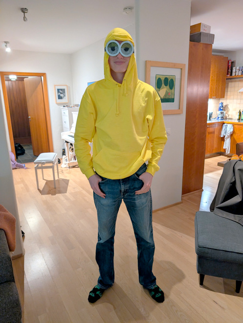 Bjarki and his buddies were going as minions! One of his friends 3D printed googly-eye-masks!