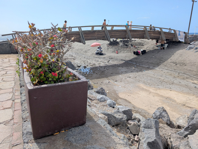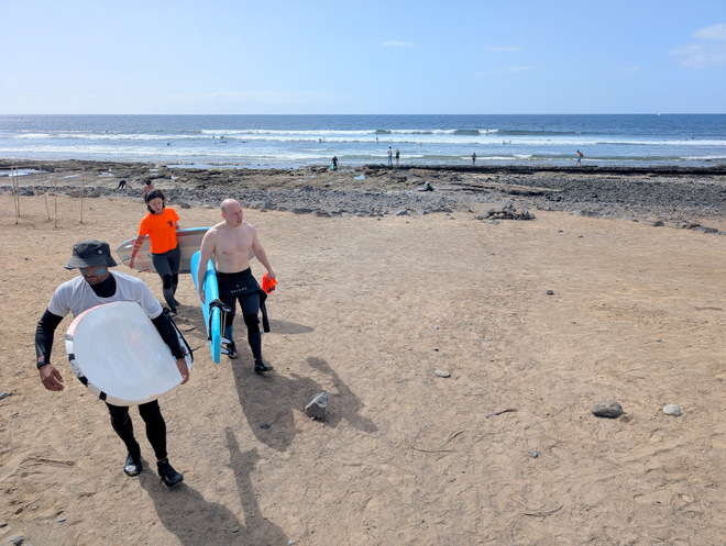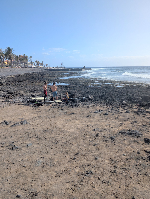 More surfers, and coarser beaches, clearly old lava flows.