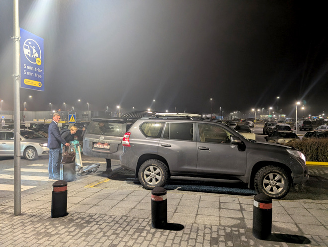 Loading the car at the airport on the departure side, as the arrival’s side was still a construction mess. They’ve instituted a harsh camera-enforced 5-minutes free limit on the unloading area, charging an arm and a leg per minute if you go past it.