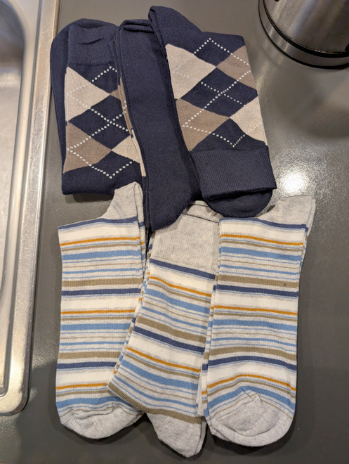 Bjarki had outgrown his socks, so I grabbed a few new ones at the store. I try to buy as many of the same color as I can to lessen sorting work.