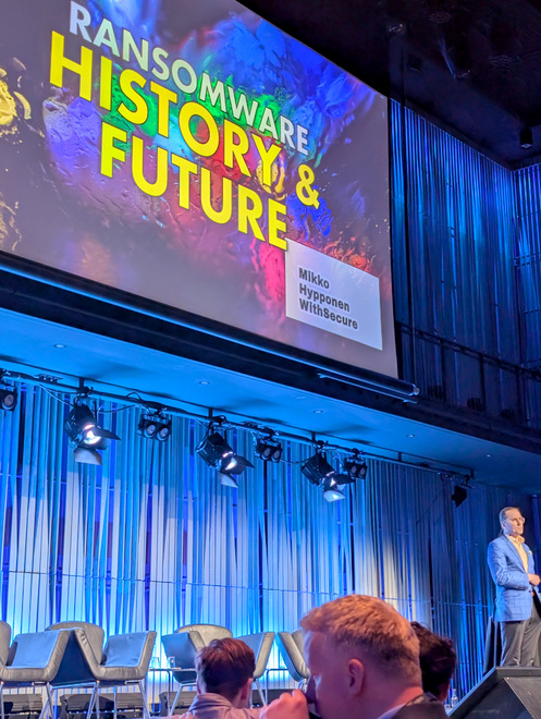 The best speaker by far was Mikko Hypponen, an old hand in the computer security business, and very practiced speaker. I’m not sure how many laptops he’s thrown on the floor in his lifetime, but one went flying that afternoon, and I must admit it’s an effective schtick when you first see it.