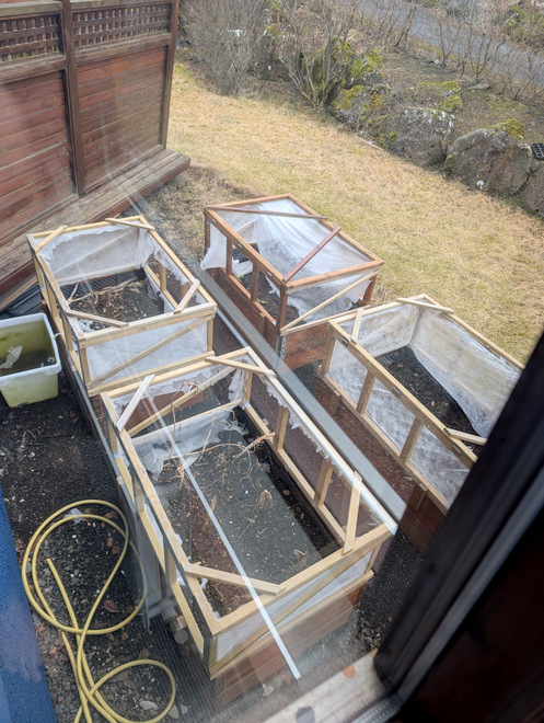 The vegetable boxes were a mess after a windy-winter. The cloth we’d bought seemed to be single-season only.